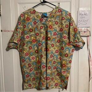 Brighten your wardrobe with this colorful patterned women's top. Featuring a playful design in cream, red, and blue, this top is perfect for casual outings. Enjoy comfort and style with this vibrant piece.