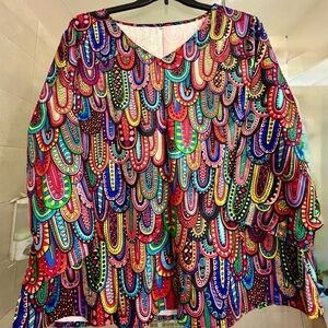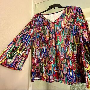 Vibrant and stylish women's top featuring a colorful pattern. Perfect for adding a pop of color to your wardrobe. NEW, never used.