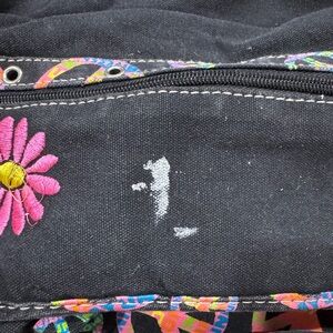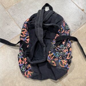 Colorful backpack with peace signs. Some staining and fading