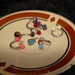 Set of 8 colorful piercing jewelry with various designs. Includes pink, red, blue, purple, and white accents.