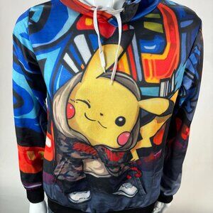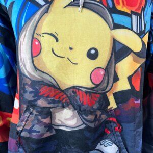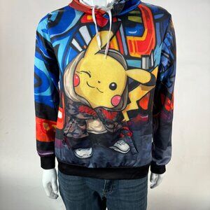 Embrace a splash of vivid color and whimsy with this Pikachu-themed hoodie, where street art meets playful charm. This garment is an artistic expression, bringing together the urban vibe of graffiti with the beloved Pikachu character, creating a whimsical fashion statement. It's an imaginative garment that promises comfort and style in equal measure.