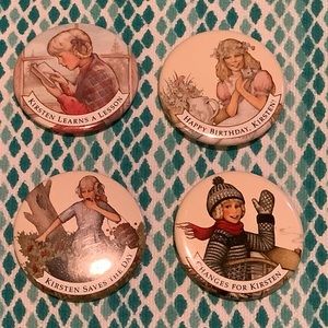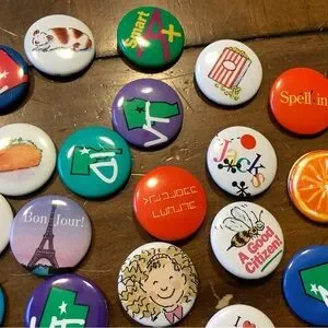 Set of vibrant pinback buttons with various designs and messages. Perfect for adding flair to bags or jackets. Gently used in excellent condition. Vintage pins from various years. Pleasant Company.