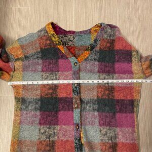 Colorful Plaid Button Front Cardigan Size XXL V-Neck Exposed Seams Casual