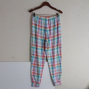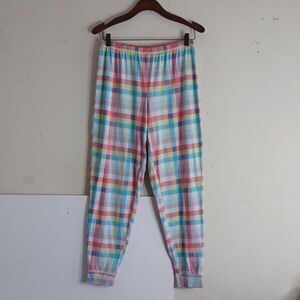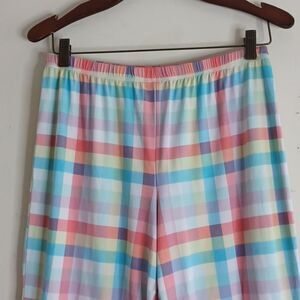 Vibrant plaid pajama pants with a mix of colors. Perfect for lounging in style.