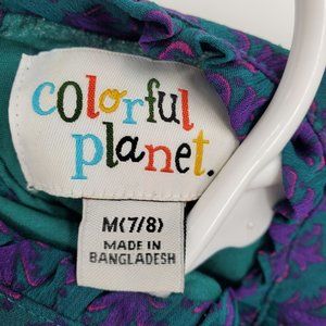 Colorful Planet Girls Green Dress Purple Fleur de Lis Peasan M 7/8