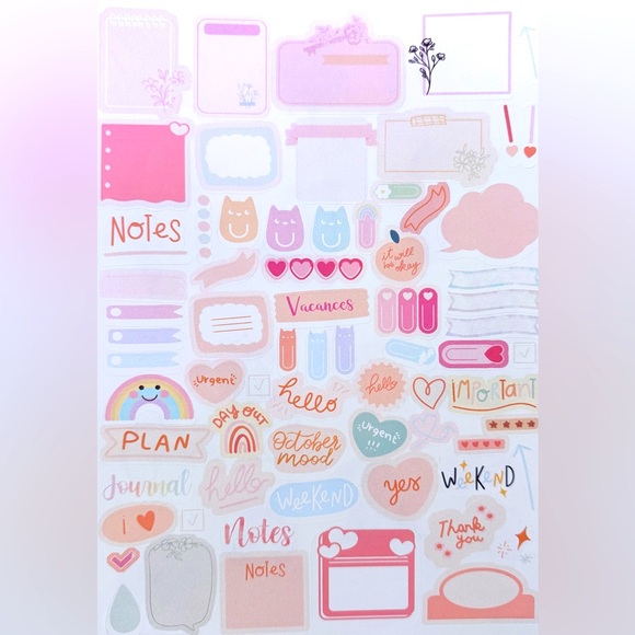Vibrant planner stickers with various designs. Perfect for organizing and decorating.