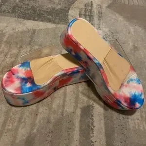 Platform sandal Never worn Clear plastic strap