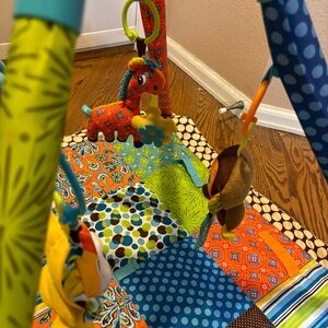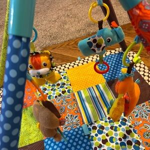 Engage your child with this vibrant play gym featuring a variety of colors and fun hanging toys. Perfect for stimulating your child's senses and encouraging playtime.