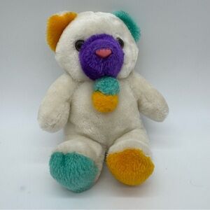 This adorable plush stuffed bear features a vibrant mix of colors, perfect for kids. Its soft and cuddly design makes it a delightful companion for playtime and bedtime.