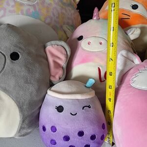 lot squishmallow A collection of colorful plush toys featuring animals and fun designs. Includes pink, green, orange, and purple hues.