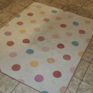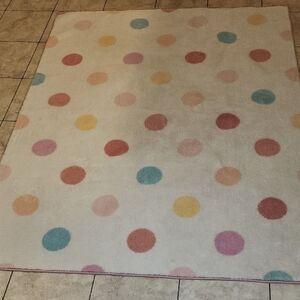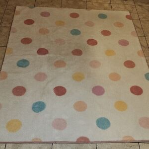 Vibrant rug with multicolored polka dots. Perfect for adding a playful touch to any room.