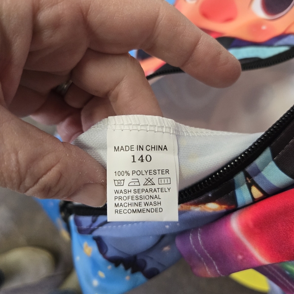 Vibrant polyester garment with a mix of colors. Features a playful design.