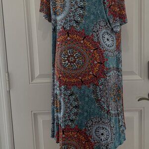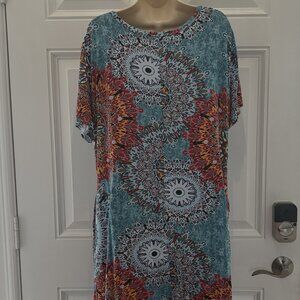 Colorful Print Dress by Korsis Size 3XL Side pockets 95% rayon - 5% spandex