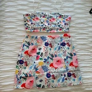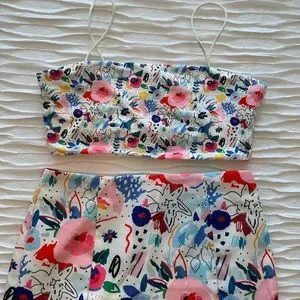 matching crop top and mini skirt set. only selling since it’s slightly too small for me now. Top is a size large, and fits like an 8. skirt is a size medium and fits like a 6. never worn