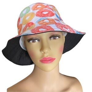 Colorful Printed Bucket Hat Festive Fun Fruit Loop Bucket Hat w Sweatband NWOT