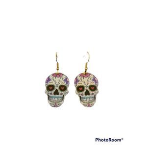 Women Silver Earrings Punk Hip Hop Exaggerated Colorful Printed Skull Personality Drop Earrings For Female Men Fashion Party Jewelry Gifts Gifts For Girlfriend, Wife, Sister, Daughter, Mother Birthday Gift Bohemian Festival