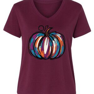 Colorful Pumpkin Fall Graphic Tee | Purple Autumn T-Shirt for Women
