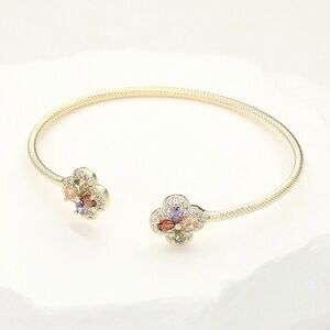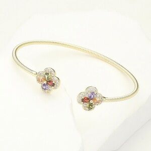 Colorful Quatrefoil Gold Cuff Bracelet Amethyst, Red Garnet, Citrine & Peridot