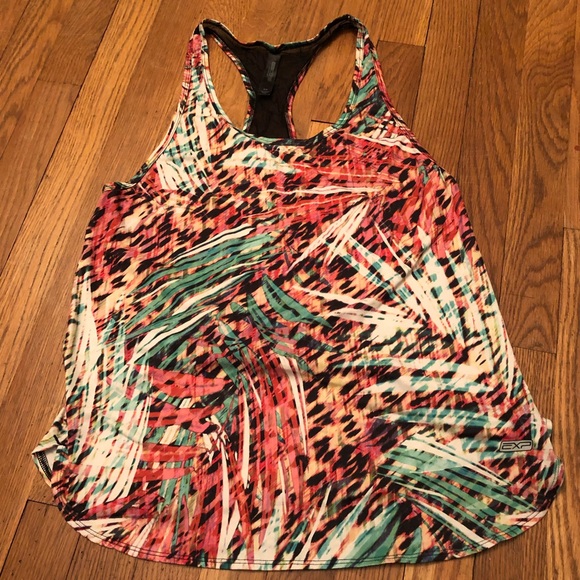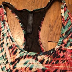 Colorful workout tank with racerback. Mesh on back. Longer fit for more coverage.