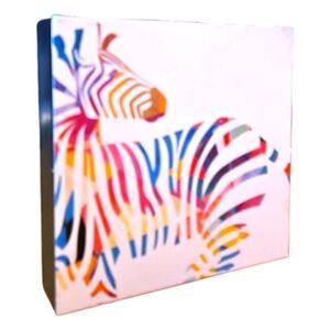 Colorful Rainbow Zebra Art Print, 6" x 6" x 1.5", NWOT