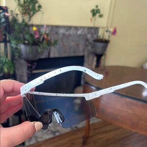 Stylish sunglasses with a colorful reflective lens. Perfect for a bold look.