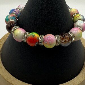 Colorful Resin Beaded Stretch Bracelet With Rhinestone Accents