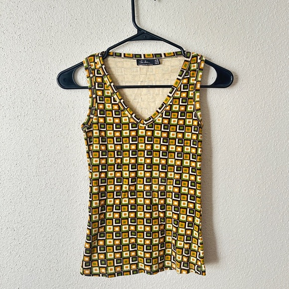 Green/Yellow/Brown/Cream V-neck Vintage Tank Top
