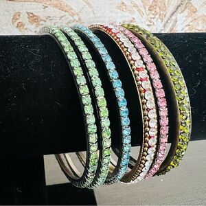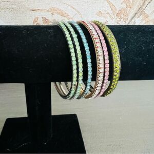 Set of sparkling rhinestone bangles. Features vibrant colors. Perfect for adding a pop of color.