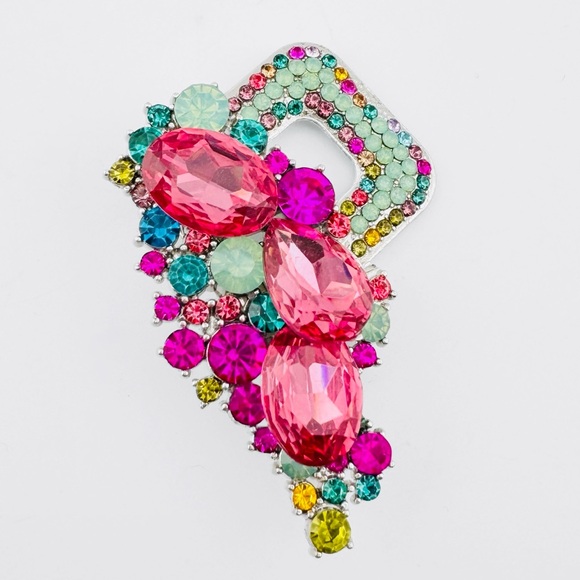 NWT Colorful Rhinestone Brooch. Sparkling red, pink, blue, green, orange and clear stones. It measures approximate 2” x 1.25”.