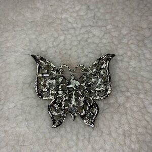 Dazzling butterfly brooch with multicolored rhinestones. Perfect for adding sparkle to any outfit.
