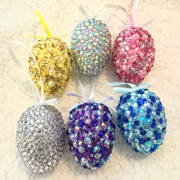 Bling decorative eggs adorned with rhinestones. Perfect for adding sparkle to any decor. Please select the color you’d like from the colors shown.