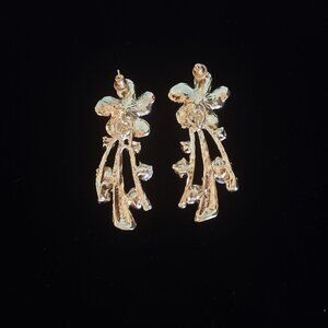 These Colorful Rhinestone Earrings measure 2 1/4" long & the flower at the top is 3/4" wide.