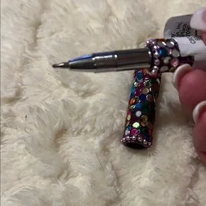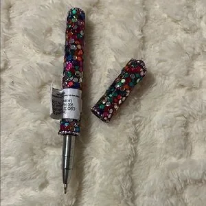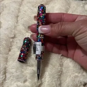 Vibrant pen adorned with multicolored rhinestones. Perfect for adding sparkle to your writing.