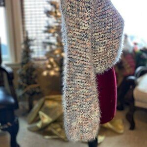 Very cute Romantichut fuzzy sweater! The muted colorful tones are great for any outfit. Very soft to the touch and waiting to be added to your closet!