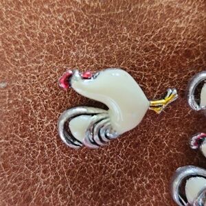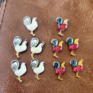 5 white, 5 red chickens, roosters with 2 holes on each side for stringing a bracelet or attaching to other types of jewelry, clothing or craft projects.