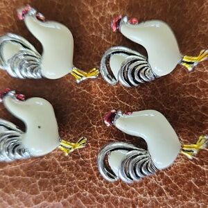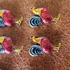 Colorful Rooster Chickens Metal Enameled Beads Set 10
