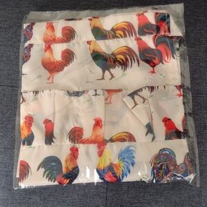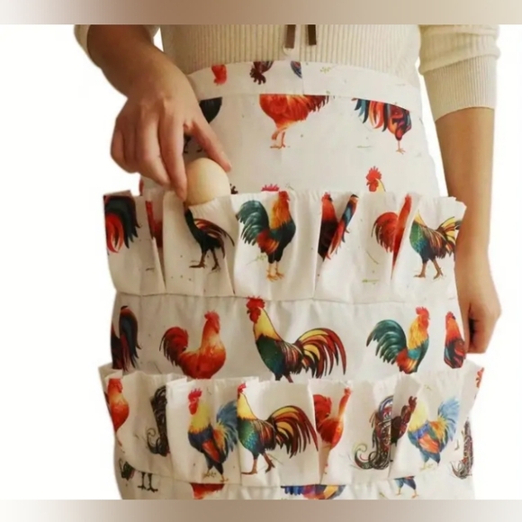 Embrace vibrant style with this colorful rooster print egg apron. Perfect for collecting up to a dozen eggs!
