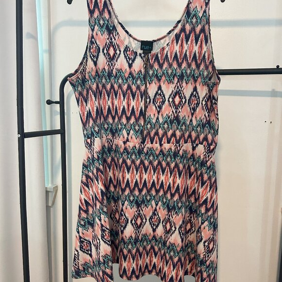 Pink, Green, Navy, White Dress. Zipper front to belly button