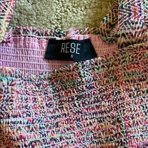 Vibrant two-piece with a ruffle top and layered skirt. Ideal for a chic ensemble.