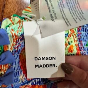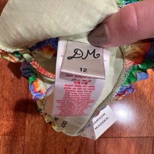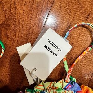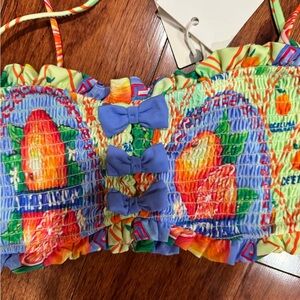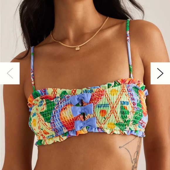 Vibrant and stylish, this bikini top features a colorful design with ruffled details. Perfect for a standout beach look.