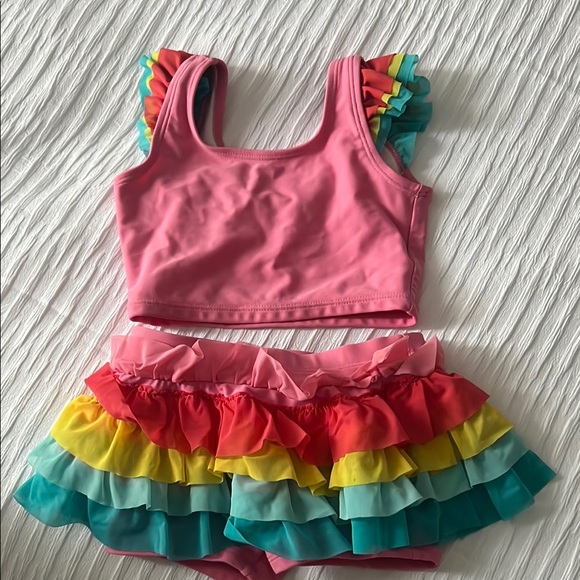 Brighten up playtime with this colorful kids costume set. Featuring a vibrant pink top and a multicolored ruffled skirt, it's perfect for imaginative adventures.