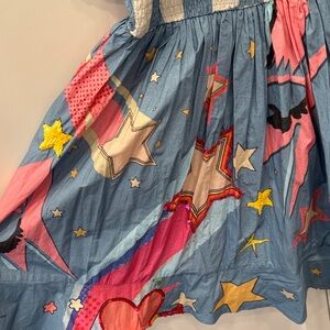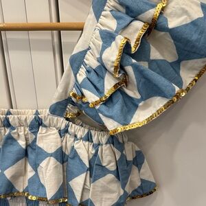 Vibrant mini dress with playful ruffles and a unique pattern. Perfect for adding a splash of color to your wardrobe.