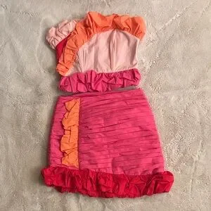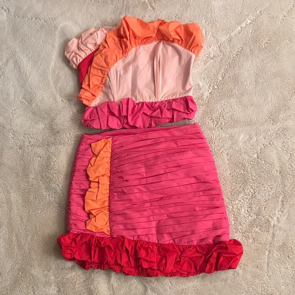 Vibrant women's set featuring playful ruffles in pink, red, and orange. Perfect for adding a pop of color to your wardrobe.
