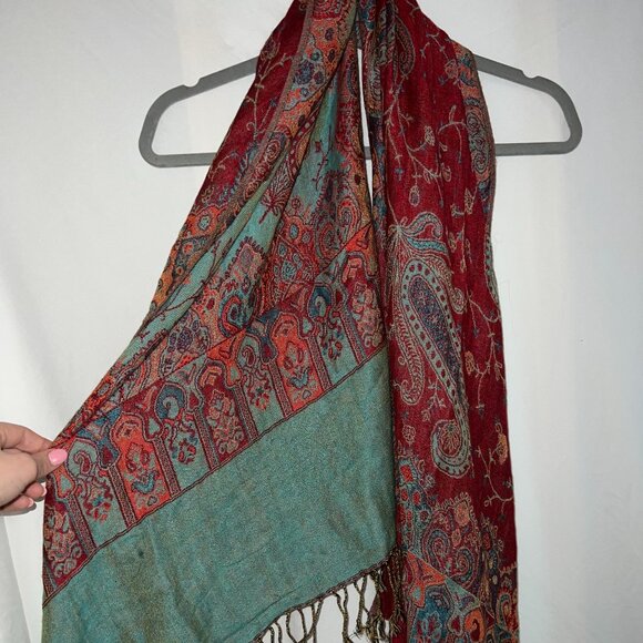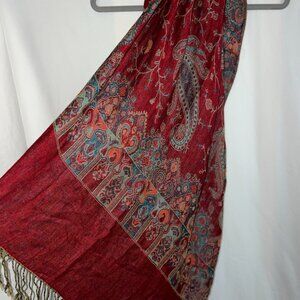 blue and deep red scarf with paisley features