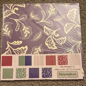 Enhance your creative projects with this vibrant scrapbooking paper set. Featuring a variety of colors including purple, green, and red, this collection is perfect for adding a splash of color to your crafts.