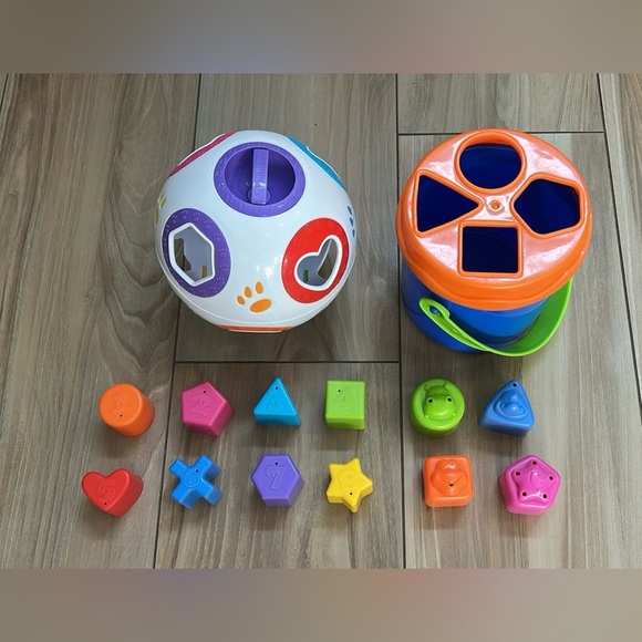 Engage your child with this vibrant shape sorting toy set. Featuring a variety of colors and shapes, this toy helps develop fine motor skills and shape recognition. Perfect for interactive playtime. The rolling ball sorter is fun to crawl or chase after.