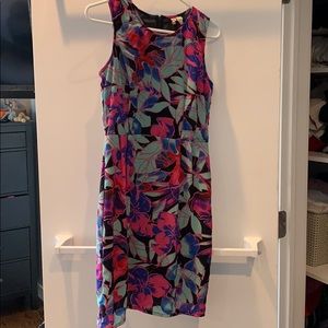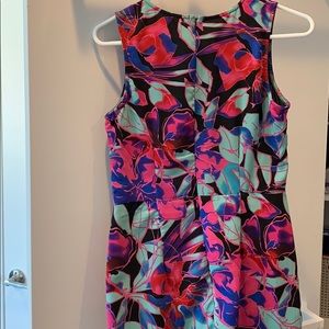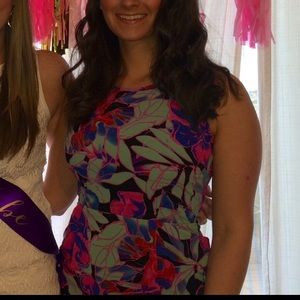Fun summer/fall dress for a wedding or night out with the girls! Big Floral pattern; pink, blue, hint of red and black - matches any heel. Can wear with dark tights and leather coat as well.