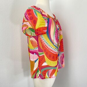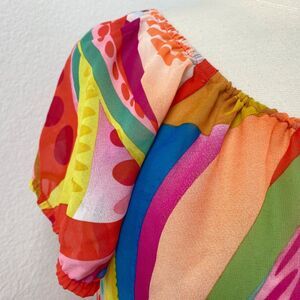 Colorful Sheer Chiffon Boho Blouse Large Boho Bold Op Art Whimsy Festival Resort