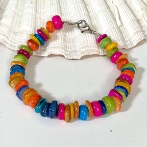 NWT Artist crafted bracelet,made with colorful dyed sea shell beads. Silver tone lobster claw clasp.