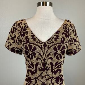 Colorful Short Sleeve Cocktail Dress Purple and Gold Size 6 JS Collection Sheath